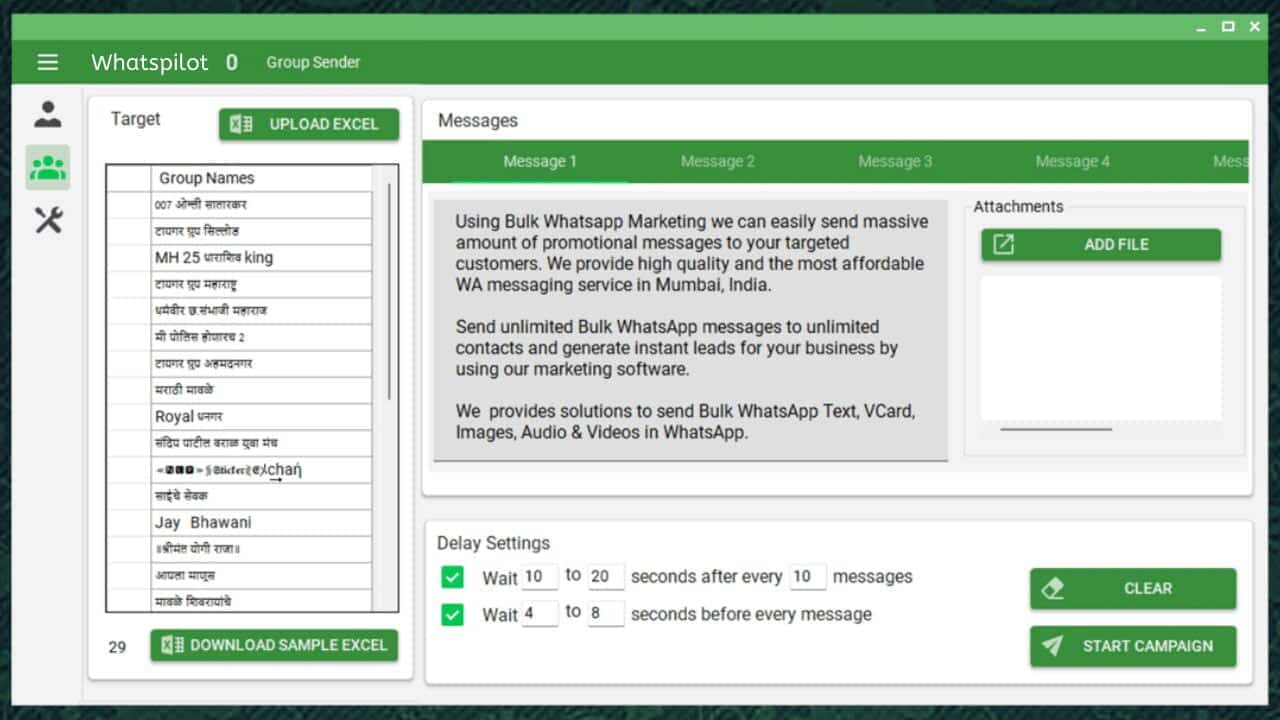 10) Do not send more than 600 messages per hour. Bulk Whatsapp Sender has a unique capping option where you can tell Bulk Whatsapp Sender when to stop sending messages.